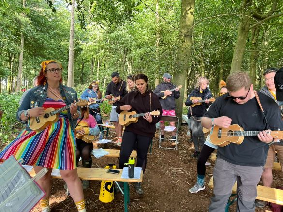 Camp Wildfire 2024 Summer Camp for Adults Back again for a THIRD year, teaching ukulele to lots of keen ukulele beginners in the woods of Kent. Once again it was amazing how quickly you all picked it up! And the winner of most popular song was… Shake it off! Share this: Click to share on X (Opens in new window) X Click to share on Facebook (Opens in new window) Facebook Like Loading...